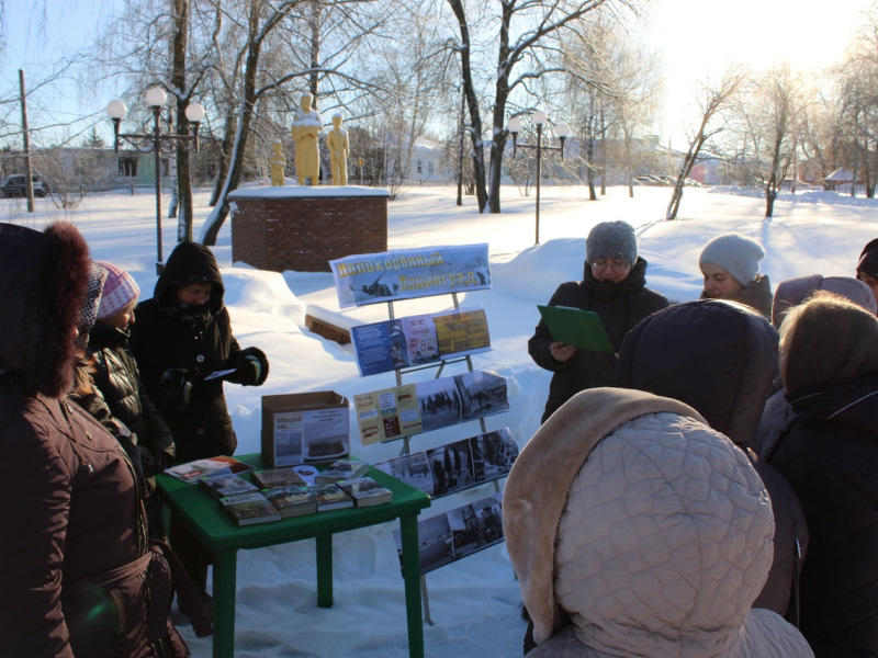 В преддверии знаменательной даты, центральная библиотека провела уличную акцию «900 дней мужества». На площадке центрального парка для всех желающих работала экспозиция «Блокадный фотоальбом» освещающая в запечатленных кадрах суровые моменты реальности окруженного вражеской армией города. Книжная выставка «Память о блокаде нам книга оставляет» представляла вниманию участников мероприятия художественные и документальные литературные произведения, в которых отражена суть мужества, стойкости, самоотверженной любви к Родине, удивительной силы духа русского народа. Ведущие рассказали о трудностях блокадного Ленинграда, зачитывали воспоминания жителей, читали стихи пронизанные эмоциями и реалиями тех страшных лет. Ребята из волонтерского объединения "В ритме жизни" распространяли буклеты с информацией о столь непростой и значительной дате, так же раздавали символические «блокадные» 125 грамм хлеба, с описанием состава этого продукта на момент самого жесткого голодного года блокады. В акции участвовали отдыхающие группы дневного пребывания КЦСОН.
