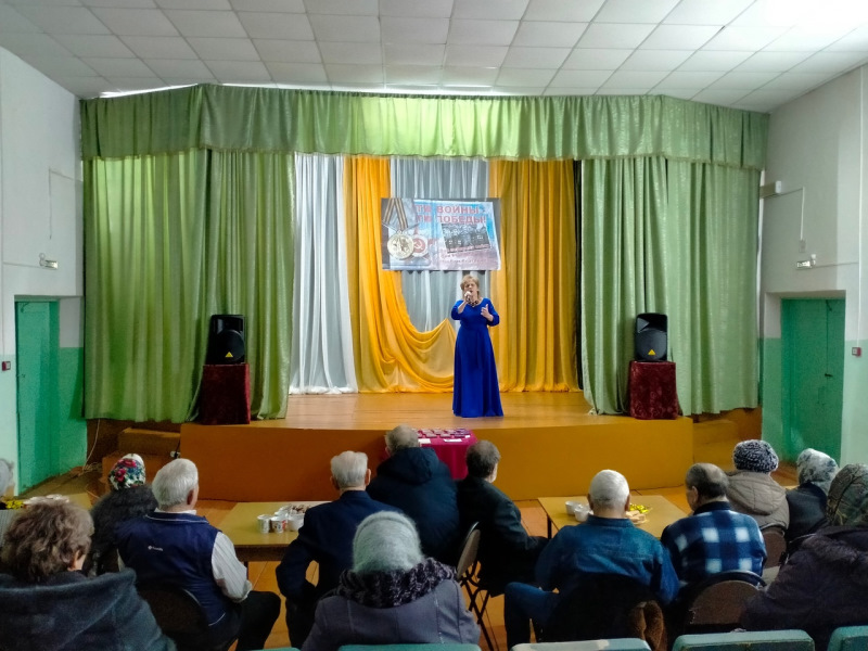 В честь старшего поколения звучали песни военных лет в исполнении Марины Тановой, Натальи Пивкиной, Насти Юченковой. Стихотворения о войне прочитали Наталия Сычкова и ученики 3 класса. Торжественную праздничную программу вели Ефим Шулепов и Наталья Пивкина.
