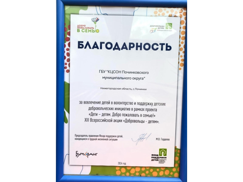 ✅ Отделение социального обслуживания семьи и детей ГБУ «КЦСОН Починковского муниципального округа» при содействии зав. отделением Ю. Ю. Улитиной, социального педагога О.В. Шалдиной, методиста Н.Г. Шмаковой, психолога Е.В. Уткиной, совместно с волонтерским объединением «Мы вместе» и ЗАГС Починковского муниципального округа, приняли участие во Всероссийском добровольческом проекте "Дети - детям. Добро пожаловать в семью" в рамках XIII Всероссийской акции "Добровольцы детям".