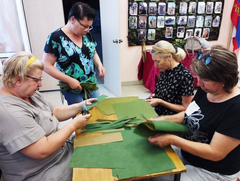 Работники отделений социально-бытового и социально-медицинского обслуживания на дому п. Шеманиха делают заготовки для изготовления нашлемников для СВО