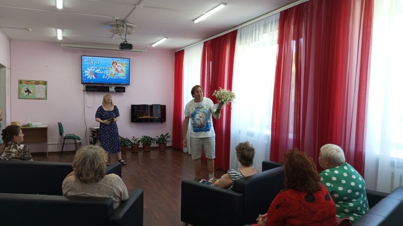 В праздник Дня семьи, любви и верности сотрудники Краснобаковской библиотеки имени Н.Г. Тумакова посетили дневное отделение ГБУ КЦСОН Краснобаковского муниципального округа и поздравили наших обслуживаемых с праздником, где для них представили фото-зону и провели мастер-класс "Ромашковое сердце" и квиз "О семье".