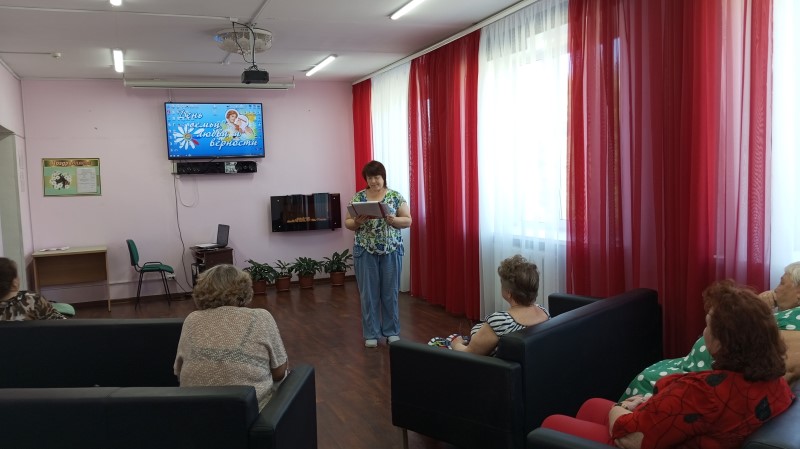 В дневном отделение ГБУ КЦСОН Краснобаковского муниципального округа прошло музыкально- развлекательное мероприятие, посвященное Дню семьи, любви и верности «Благочестиво жившие и посмертно неразлучные». Мероприятие подготовила культорганизатор Смирнова Е.А., она рассказала о житии святых Петра и Февронии. Наши обслуживаемые прослушали гимн семьи любви и верности, читали стихи , пели песни о любви, вспомнили приметы этого дня.