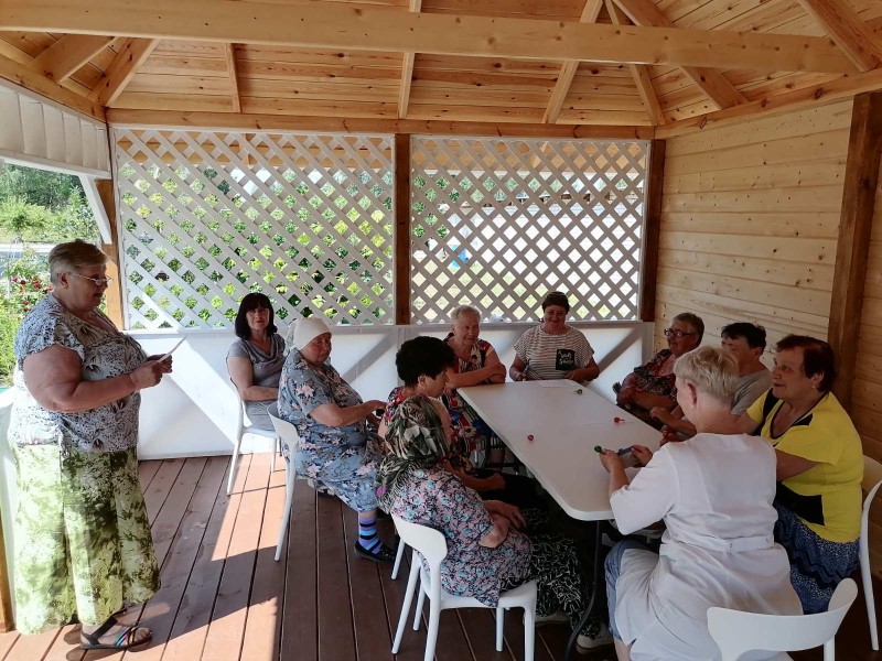 В нашем Спецжилдоме состоялась развлекательно-познавательная программа «Я на пенсии сижу, время зря не провожу!». Жителям дома понравилось собираться в летней беседке. Жаркова Т.И. представила участникам программы развивающие игры «СМЕКАЙ, СЧИТАЙ, ОТГАДЫВАЙ» с целью развития внимания, памяти, смекалки, любознательности, творческих способностей. Во время мероприятие пожилые люди научились быстро обдумывая отвечать на вопросы, высказать свое мнение, а также логически мыслить. Фельдшер Сенникова Е.Н. провела профилактическую беседу по пропаганде здорового образа жизни.