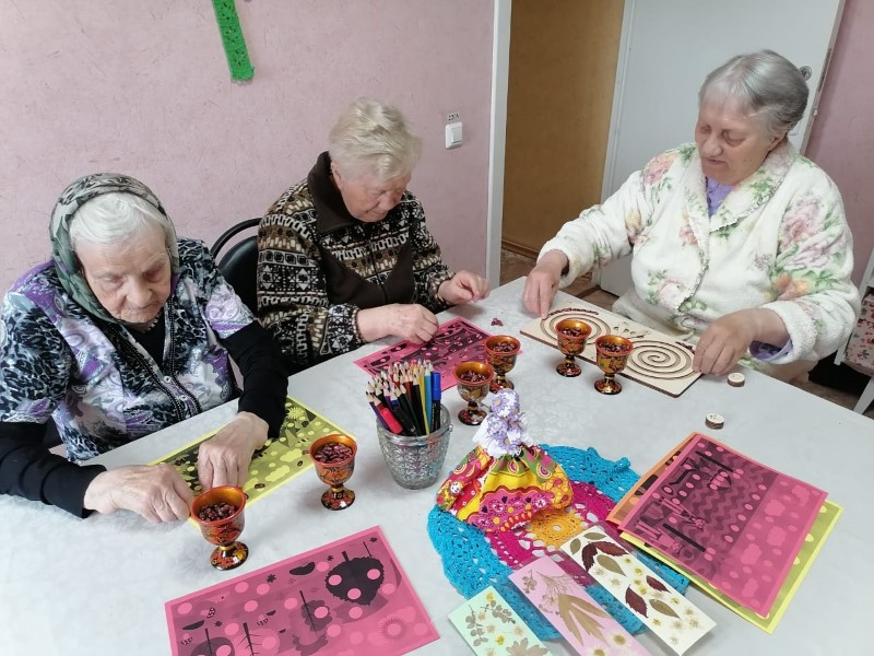 Для эффективной работы мозга каждому пожилому жителю отделения выбран наиболее удобный комплекс упражнений. Упражнения на фокусировку взгляда, перекрестные движения глаз и языка, рук и ног, обучение самомассажу кистей и стоп помогают укрепить межполушарные связи в мозге, улучшить координацию и просто положительно повлиять на самочувствие наших пожилых людей.