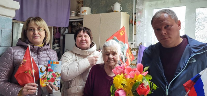 Работники Комплексного центра совместно с заведующим территориальным сектором п. Шеманиха Горшковым А.М. поздравили с наступающим праздником - Днем Победы вдову участника ВОВ Баскакову В.А.