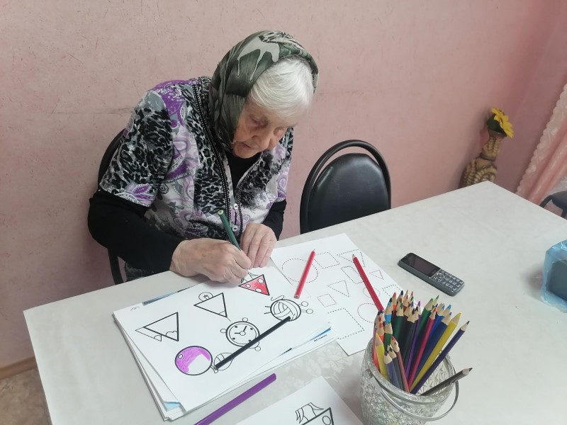 В отделении «Специализированный жилой дом для граждан пожилого возраста и инвалидов» продолжается работа по программе «КЛЮЧИ К ЗДОРОВЬЮ».Пожилые люди проходят психологические тесты для тренировки памяти и внимания, используя технику "Нейробика", рисуя одновременно двумя руками.Одновременные движения обеих рук активируют сразу оба полушария мозга. Создаются новые нейронные связи, а значит, процессы анализа и синтеза информации проходят быстрее. Как следствие, повышается умственная активность и работоспособность. Полезно ли рисование для пожилых людей? Безусловно, в зрелом возрасте рисование полезно по многим причинам, в том числе и потому, что улучшает двигательные навыки. Для людей пожилого возраста, это также важно, как и для детей. Моторика и зрительная координация, способность двигаться – все это только улучшится с появлением нового хобби в вашей жизни.
