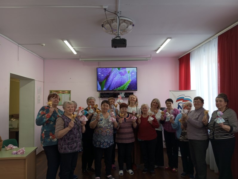 Обслуживаемые под чутким руководством смастерили куколку, с нею поиграли и потанцевали, а затем изучили приемы игры на ложках.
