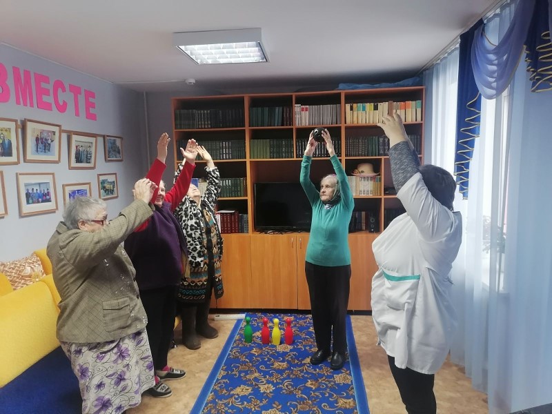 В отделении «Специализированный жилой дом для граждан пожилого возраста и иинвалидов» состоялся фитнес- час «На зарядку становись», где фельдшер отделения Беляева М.И. познакомила пожилых людей с дыхательной гимнастикой А.Н.Стрельниковой и провела комплекс упражнений. Дыхательная гимнастика А.Н.Стрельниковой перестраивает стереотип дыхательных движений, восстанавливает не только сократительную способность и пластичность мышц, участвующих в дыхании и фонации, но и укрепляет весь опорно-двигательный аппарат в целом. Упражнения Стрельниковской дыхательной гимнастики, активно включая в работу все части тела - руки, ноги, голову, тазовый пояс, брюшной пресс, плечевой пояс и т.д., снижают мышечный гипертонус, ликвидируют различные неврозы, оздоравливают психику.