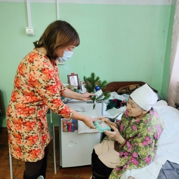 В преддверии Нового года проведена акция «Поздравим бабушек и дедушек с Новым годом!». Специалисты отделения срочного социального обслуживания ГБУ «КЦСОН Краснобаковского муниципального округа» с искренними пожеланиями благополучия, здоровья, счастья и долголетия вручили пациентам отделения сестринского ухода Краснобаковской ЦРБ новогодние подарки, изготовленные руками обслуживаемых дневного отделения, тем самым порадовав каждого.