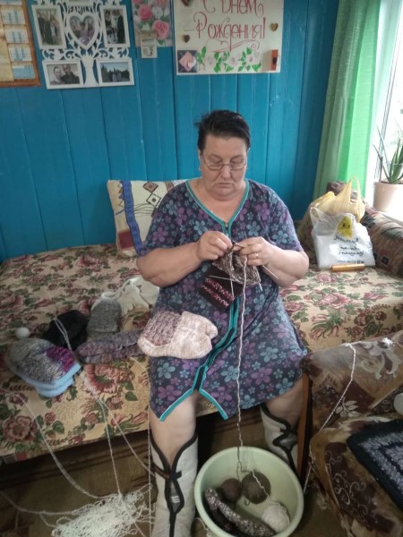 Обслуживаемая отделения социально-бытового обслуживания на дому №4 Соболева Е.С. вяжет теплые носки участникам СВО