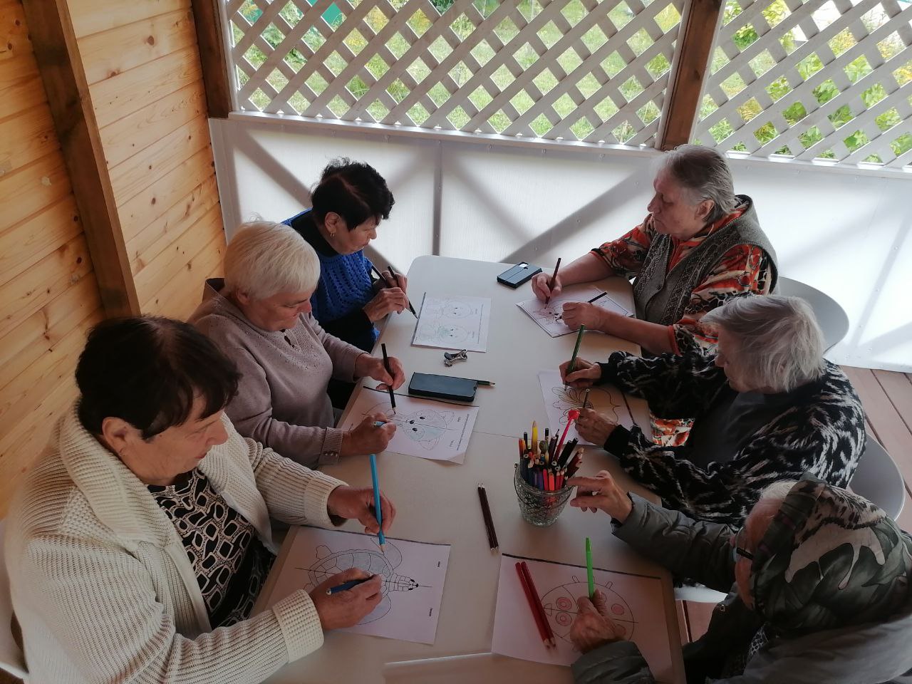 В отделении «Специализированный жилой дом для граждан пожилого возраста и инвалидов» ГБУ «КЦСОН Краснобаковского муниципального округа» продолжаются занятия по нейробике в рамках программы «Ключи к здоровью».Одна из методик предложенных на занятии упражнения на одновременное рисование двумя руками, полезна для пожилых людей, так как способствует развитию когнитивных функций, активизирует оба полушария мозга, улучшает мелкую моторику и формирует новые нейронные связи. Это упражнение тренирует синхронность движений, что благотворно сказывается на общем самочувствии и умственной активности.