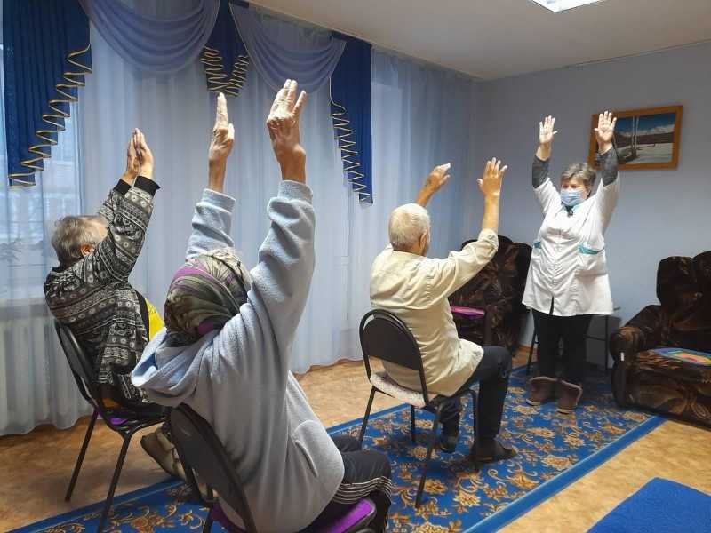 В отделении «Специализированный жилой дом для граждан пожилого возраста и инвалидов» прошел фитнес-час, направленный на укрепление двигательной активности пожилых людей. В отделении регулярно проходят занятия с фельдшером в рамках комплексной оздоровительной программы «Упражнения для долголетия».