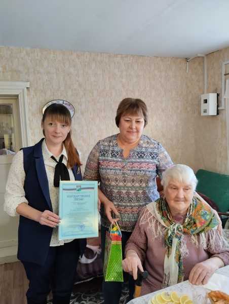 Сотрудники отделения социально-бытового обслуживания на дому №2 ГБУ "Комплексный центр социального обслуживания населения Краснобаковского района" поздравили обслуживаемую Витюгову Ксению Александровну с Юбилеем. Ей исполнилось 95 лет!