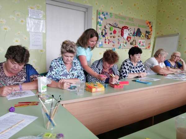 Занятие с элементами арт-терапии провела психолог Алимова С.В для обслуживаемых Отделения дневного пребывания. Всем участникам предлагалось нарисовать свою семью в образе цветов. Рисунок семьи в образе цветов отражает эмоциональное самочувствие, представление о своём месте и роли в семье.