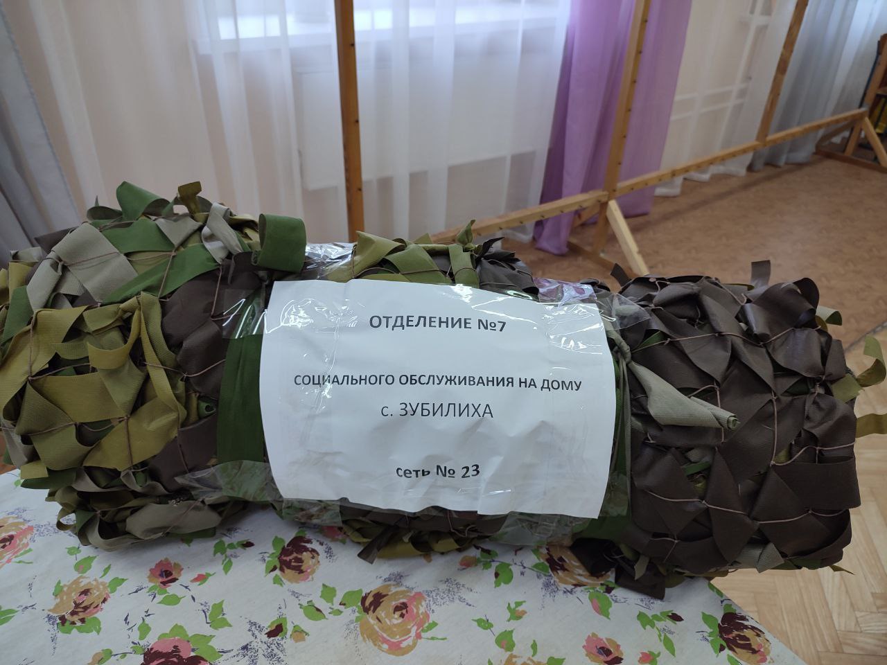 В с. Зубилиха социальные работники ГБУ "КЦСОН Краснобаковского муниципального округа" изготовили еще одну маскировочную сеть для отправки в зону действия СВО