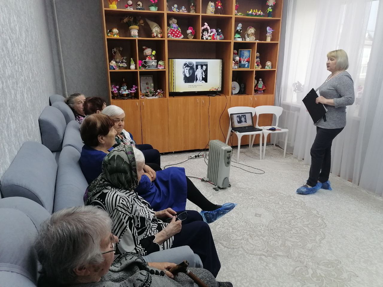 На литературной встрече библиотекарь Яшкина Анна Юрьевна, перемежая свой рассказ показом интересных слайдов, используя яркое музыкальное сопровождение и видеоролики, познакомила пожилых людей с непростой судьбой Константина Симонова, его творческой деятельностью во время Великой Отечественной войны и после.