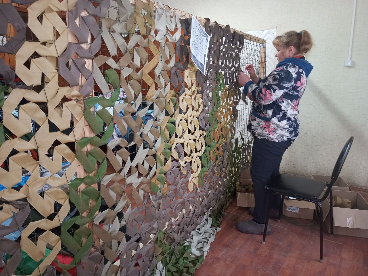 В с. Носовая социальные работники ГБУ "КЦСОН Краснобаковского муниципального округа" активно плетут маскировочные сети для отправки в зону действия СВО