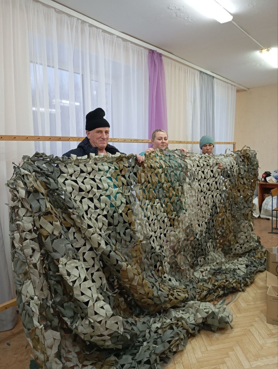 В отделении социального обслуживания на дому п. Шеманиха готова 14 маскировочная сеть для отправки в зону действия СВО. В ее изготовлении принимали участие социальные работники: Шулепина Е.В., Рыбакова Т.И., Рымина Н.В., Бухальцева О.И., Бархатова И.Ю., Воробьева Е.Ю., Шония Л.П., Смирнова Г.В., Денисова Е.В.
