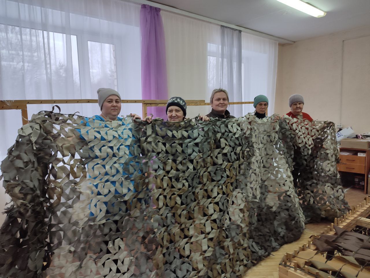 У социальных работников с. Зубилиха готовы к отправке в зону СВО четвёртая и пятая маскировочные сети. В изготовлении приняли участие 9 социальных работников: Коновалова Л.А., Храмцова К.К., Зорина И.В., Зайцев В. В., Зайцева Т. И., Зюзина Т. Л., Смирнова Т.Н., Воробьёва О.М., Грибина В.В.