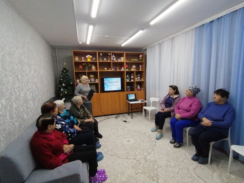 Самый ожидаемый праздник в календаре - Новый год! В преддверии наступающего праздника в отделении «Специализированный жилой дом для граждан пожилого возраста и инвалидов» состоялась праздничная викторина «С НОВЫМ ГОДОМ!». Она помогла зарядится положительными эмоциями и хорошим настроением пожилым людям.Участники мероприятия пели новогодние песни «Зима», «У леса на опушке» ,совершили виртуальное путешествие в город Великий Устюг и город Кострома ,где находится резиденция Деде Мороза и Снегурочки,погуляли по терему Деда Мороза,узнали о тропе сказок,совершили экскурсию в прошлое узнали откуда появилась традиция лепить снеговиков,ответили на вопросы новогодней викторины.Закончилось мероприятие новогодними поздравлениями и шуточным гороскопом.