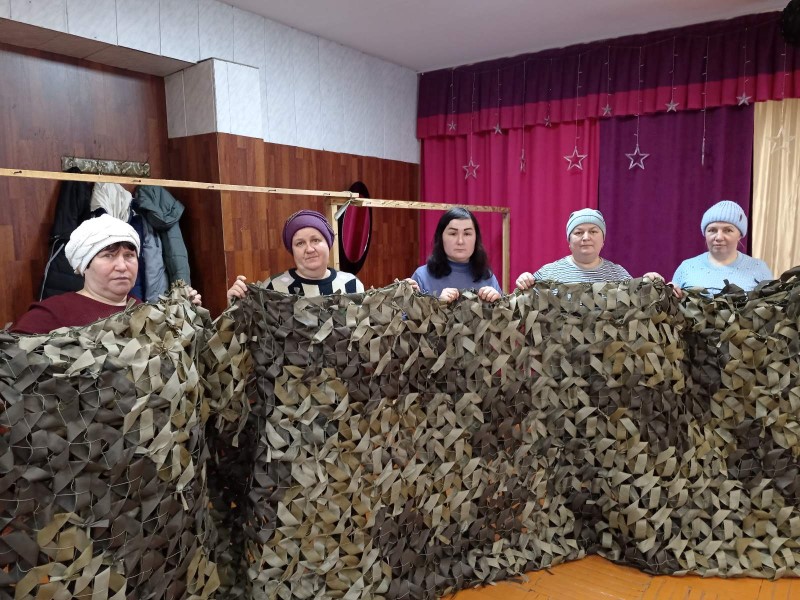 Социальные работники отделения социально-бытового обслуживания на дому с. Кириллово изготовили седьмую маскировочную сеть для отправки в зону действия СВО