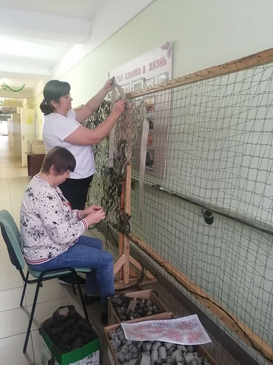 Сотрудники ГБУ "КЦСОН Краснобаковского муниципального округа" продолжают плести маскировочные сети для отправки в зону действия СВО.