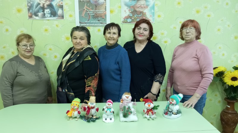 В преддверии Новогодних праздников обслуживаемые дневного отделения ГБУ КЦСОН Краснобаковского муниципального округа под руководством инструктора по трудотерапии Науменко Т.В. мастерили новогоднего снеговика.
