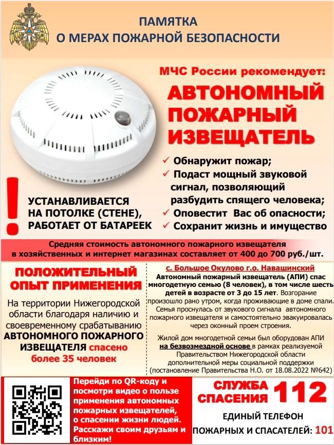 Уважаемые жители Сосновского муниципального округа! Защитите свою жизнь, детей и граждан пожилого возраста от пожара- установите автономный пожарный извещатель! Мощный звуковой сигнал разбудит Вас. Благодаря ему спасены жизни сотен людей.