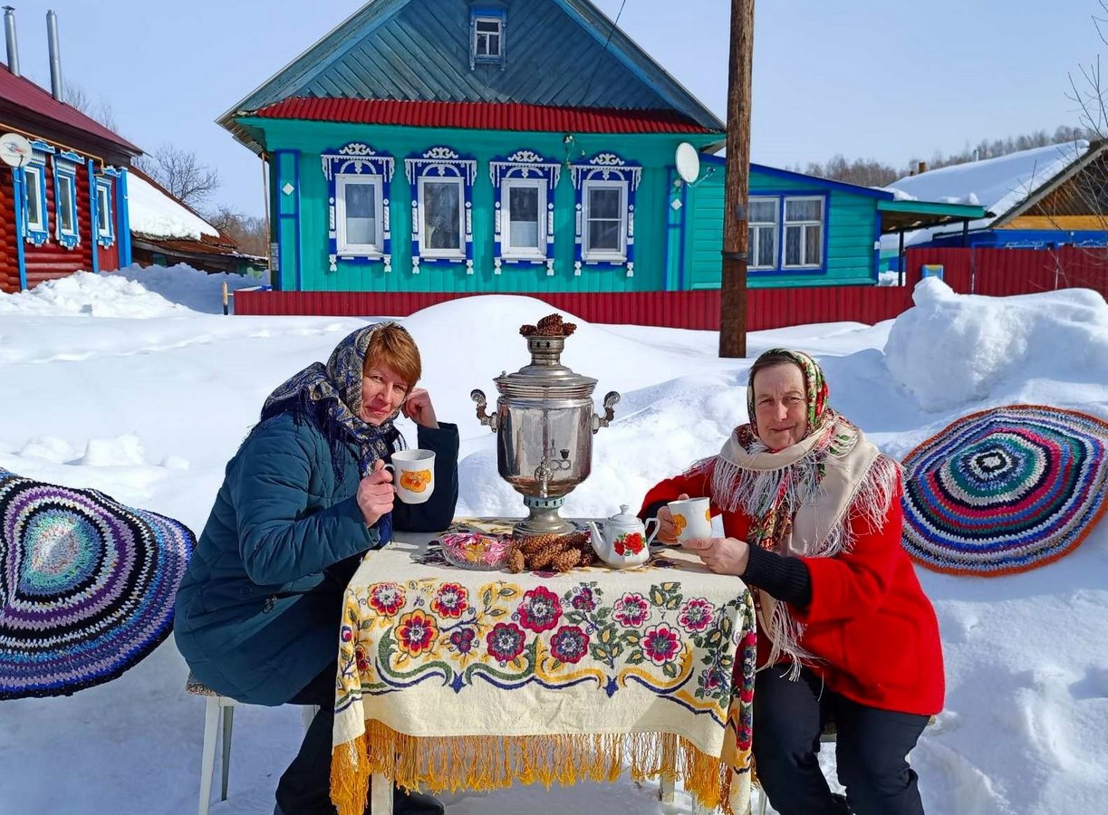 Социальные работники инициативной группы «Собеседница» коренные жительницы с. Панино. Сегодня они делятся с нами увлекательным миром расписных наличников своего родного села.