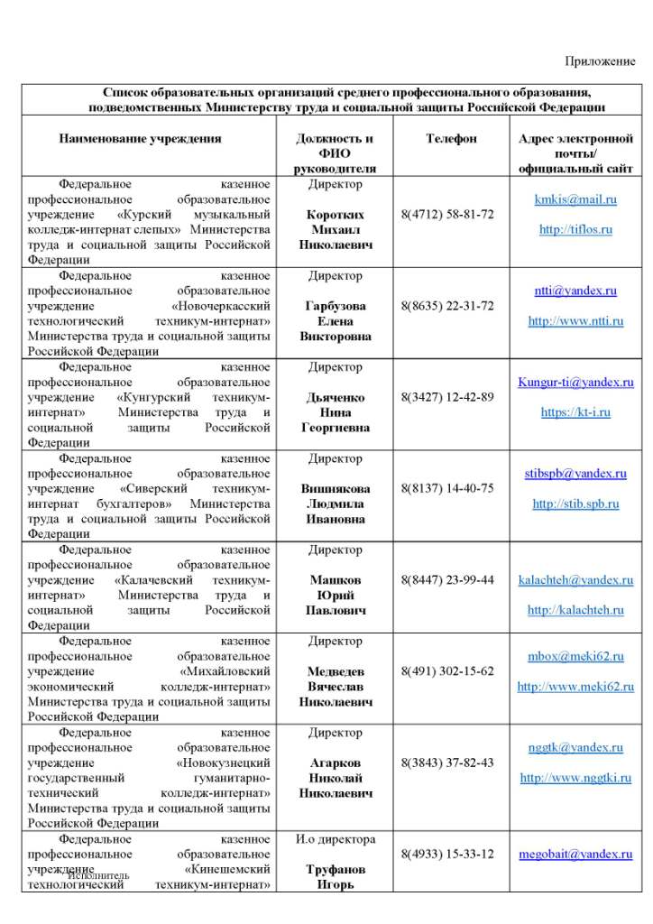 Полный список образовательных организаций среднего профессионального образования, подведомственных Министерству труда и социальной защиты Российской Федерации