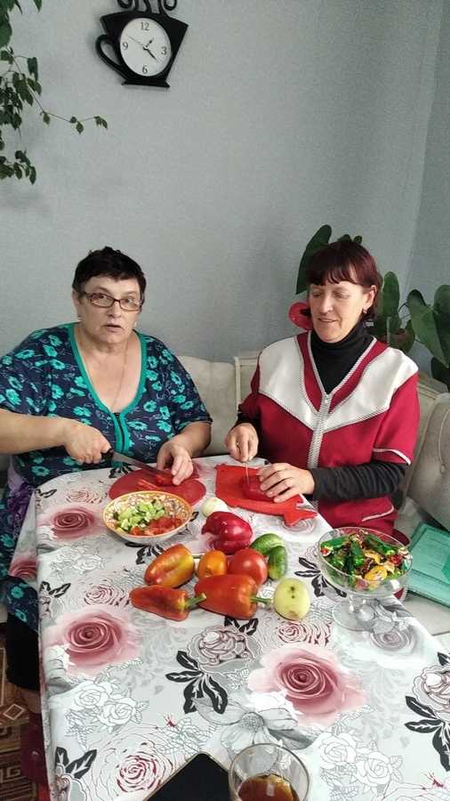 В один осенний сентябрьский день у наших подопечных открылась "Студия здорового питания на дому". Социальные работники вместе со своими подопечными готовили витаминные салаты из овощей и фруктов.