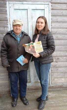 Сегодня специалист отделения социально-консультативной помощи Мешкова Е.М. поздравила с наступающим праздником Днем Победы участника ВОВ Малышева Юрия Никаноровича и вручила георгиевскую ленточку.