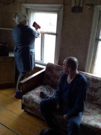 Совсем скоро праздник Светлой пасхи! Его приятно встречать в чистом доме. Вот и социальные работники Центра социального обслуживания граждан пожилого возраста и инвалидов помогают своим обслуживаемым навести порядок. Белят печи, моют окна и стены.